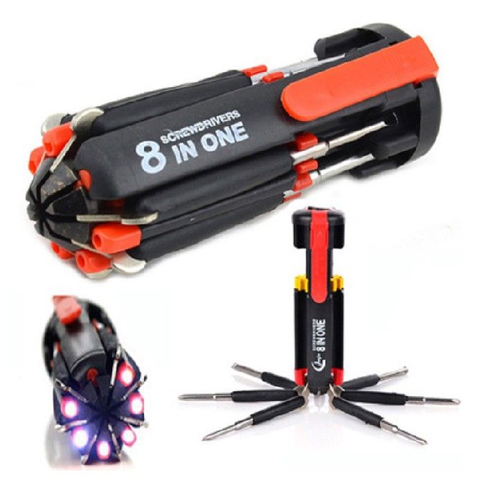 8 in 1 Multi Screwdriver Tool Set with Integrated LED torch for use on its own or to illuminate working area when using the screwdrivers.