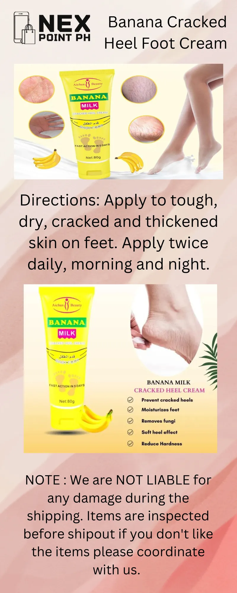 Title: | Aichun Beauty Banana Milk Cracked Heel Cream – 80gm |
