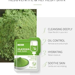 Laikou Matcha Mask contains green tea. It will clean your skin deeply and removes dirt and shrink your pore. It will works for anti aging and brightening your skin.